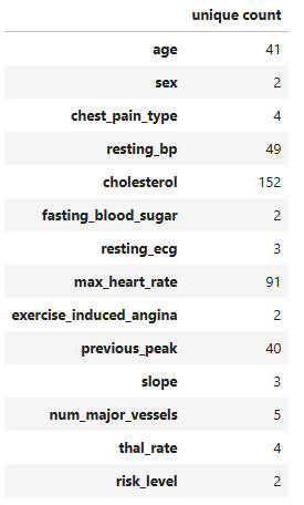 Unique value counts for all features: