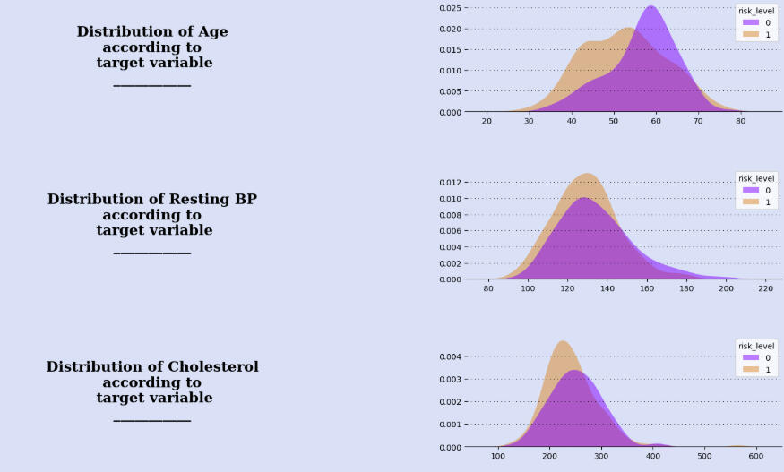 The cholesterol graphs are also very similar, with high-risk patients actually having the peak at a lower level.