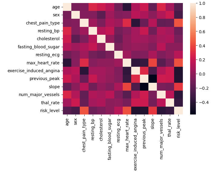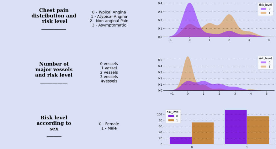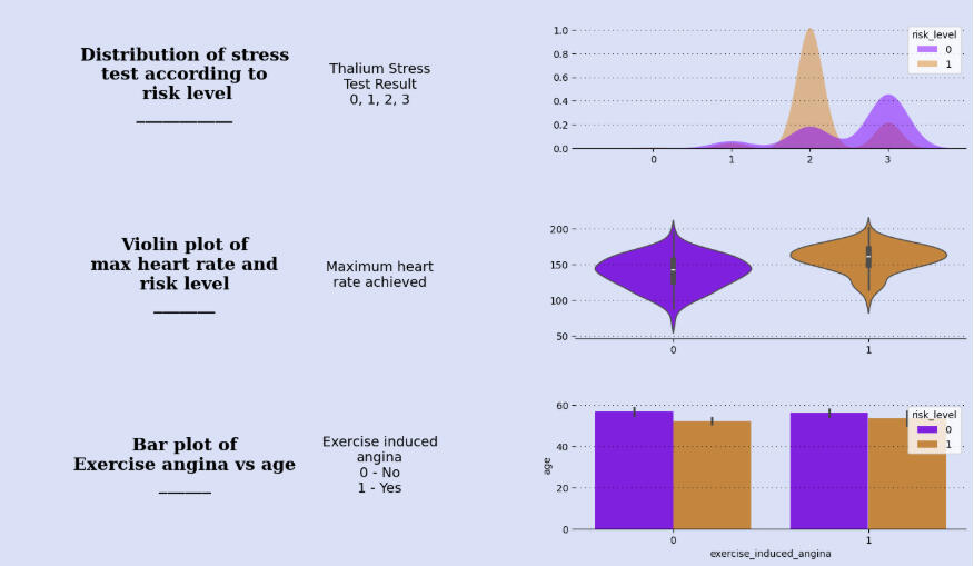Observation from the heatmap: Sex, exercise-induced angina, previous peak, and number of major vessels have the most correlation with risk-level.