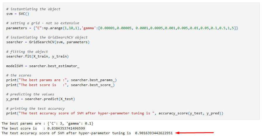 Hyperparameter tuning of SVC: