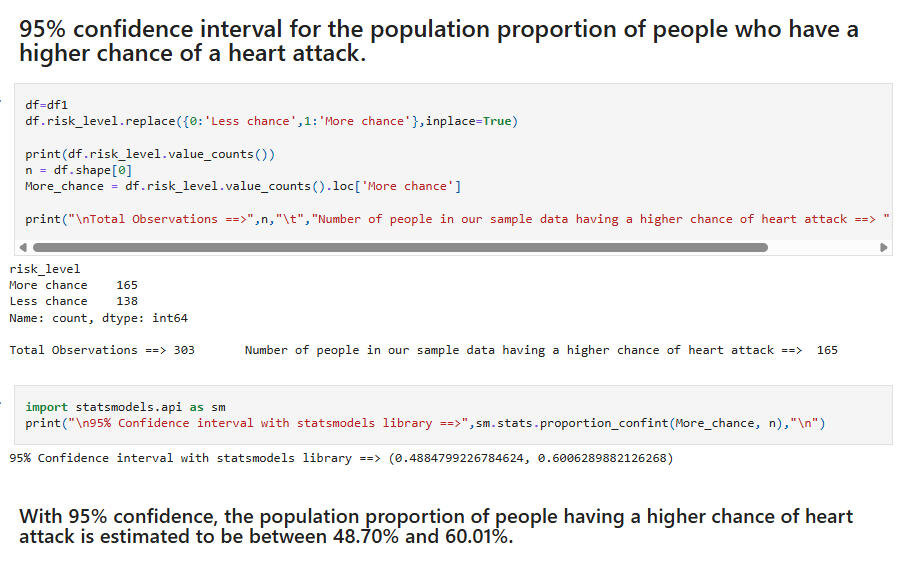 Test 1: This was slightly surprising, given that cholesterol is usually considered a major factor for heart attack risk. However, this result was corroborated by the overlapping confidence intervals found above.