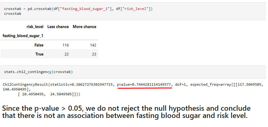 Hypothesis Test 8:Chi-Square test for association between the feature "fasting blood sugar" and the target "risk level."
