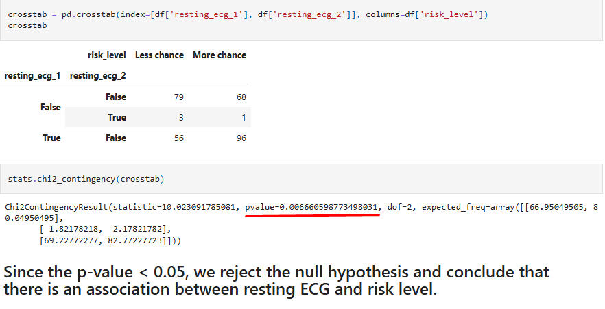 Hypothesis Test 9:Chi-Square test for association between the feature "resting ECG" and the target "risk level."